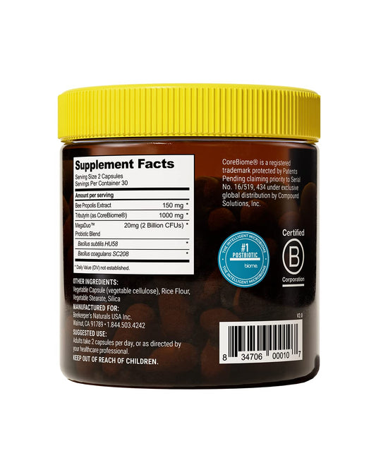 Beekeeper's Naturals Complete Gut Health, 3-in-1 Prebiotic, Postbiotic, Probiotics for Digestive Health & Bloating Relief for Women & Men, Propolis Powered, Gluten-Free Vegan Capsules, 60ct