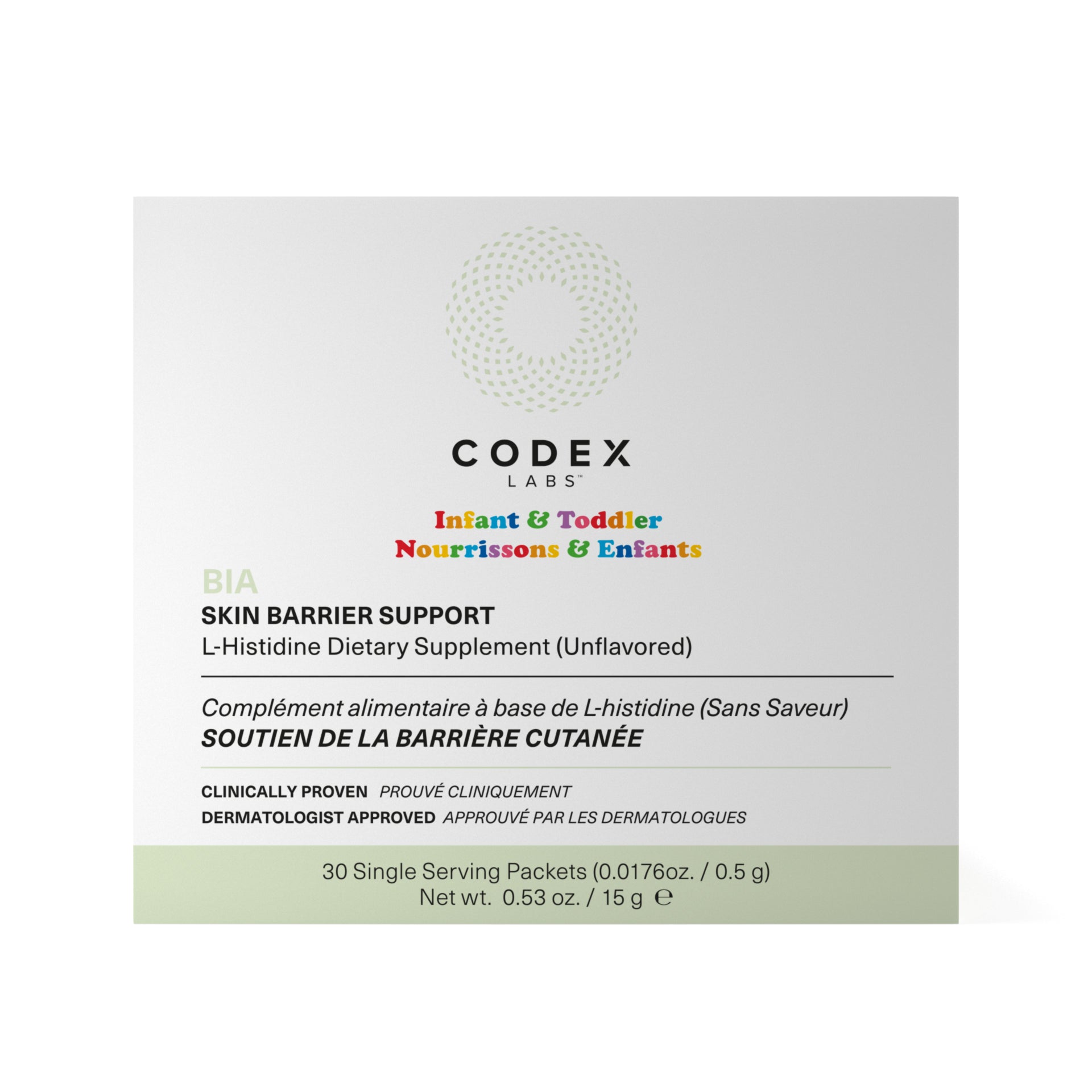 A daily infant-toddler (3 months -3 years) dietary supplement that fortifies the skin barrier to reduce water loss, smooth roughness, and protect against allergens and pollution.