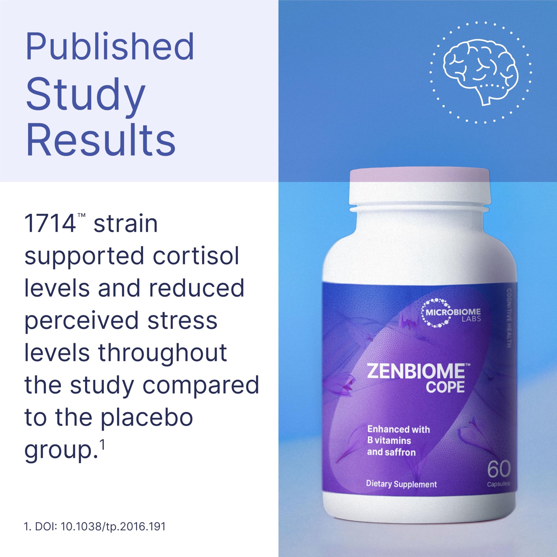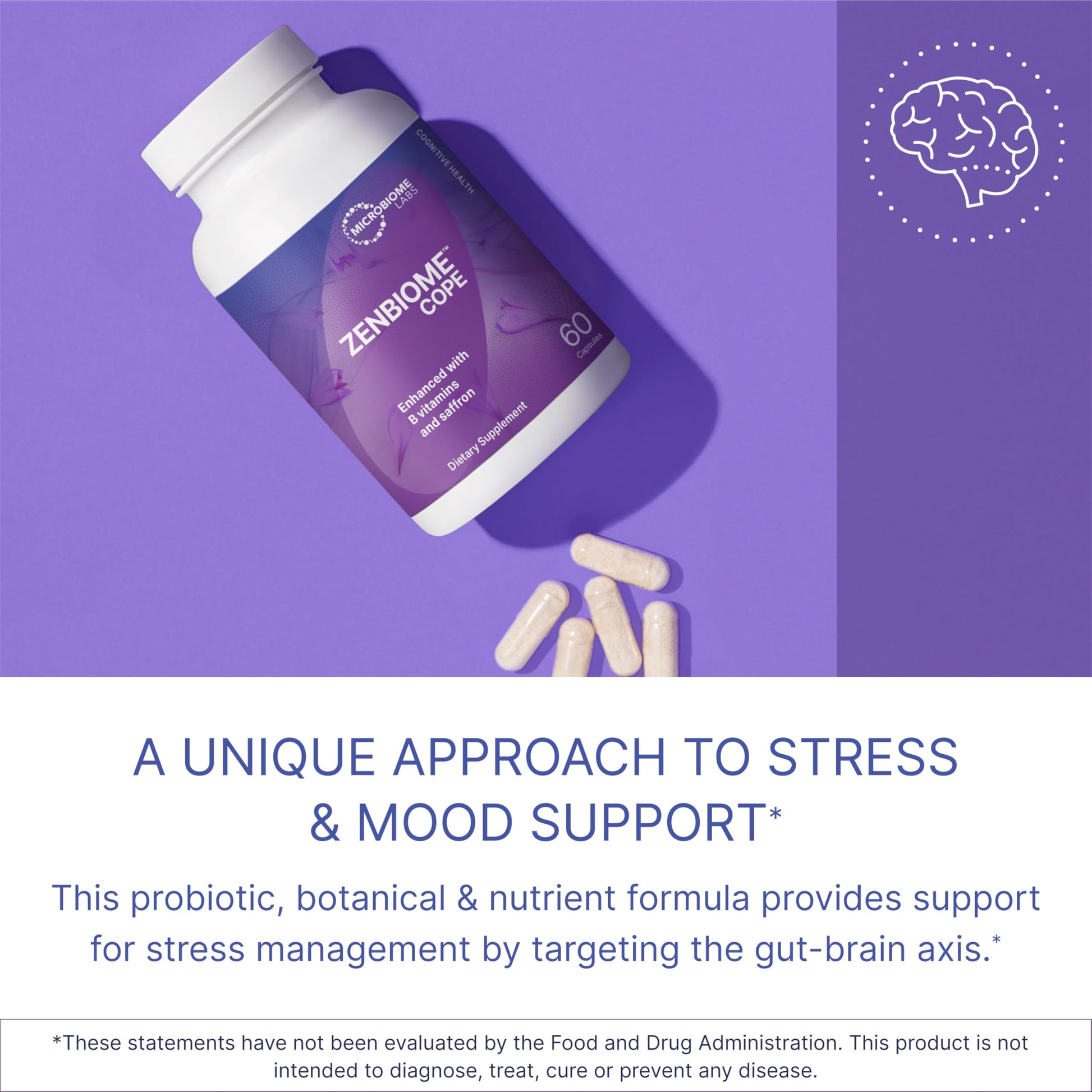 - Zenbiome Probiotic Supplement - Designed to offer to help you better handle life’s occasional stressors. Pairs the well-researched psychobiotic 1714™ with B vitamins and herbal extracts to provide healthy brain, mood and coping of stress support. Probiotics for women and men (and teens / children ages 8+).*